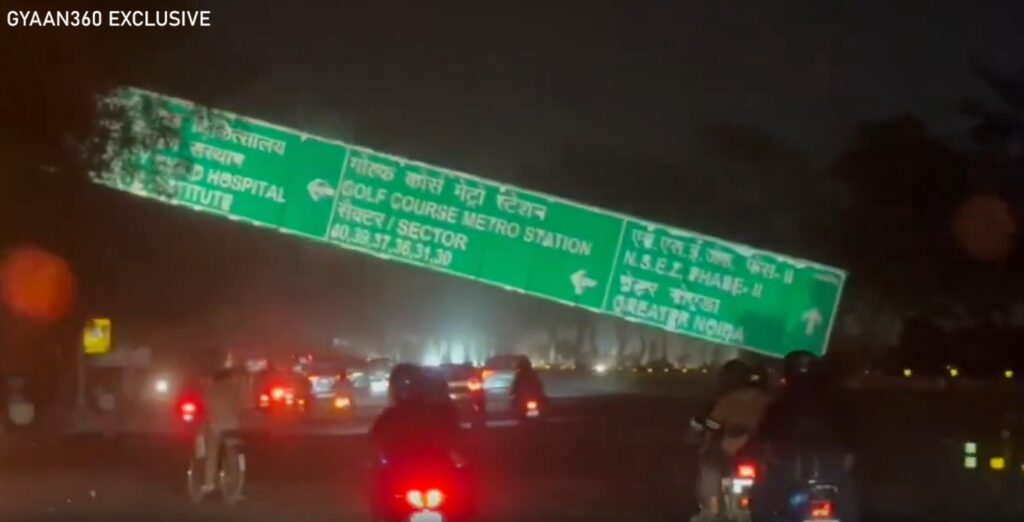 The thunderstorm in Noida resulted in the collapse of a massive advertising board near a busy intersection. The incident caused major road blockages, bringing traffic to a halt during peak hours. Fortunately, there were no casualties, but the falling board brushed against nearby shops, breaking window panes and damaging external structures.